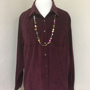 Thick, maroon, button down shirt. Like new condition. Item #156.