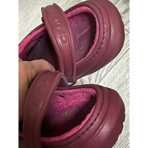 Step into comfort with these maroon Crocs! Featuring a soft interior, these shoes will keep your feet cozy all day long. Perfect for casual wear or lounging around the house. Grab them now and experience the ultimate in comfort and style! Size: Men's 7, Women's 9.