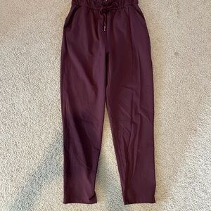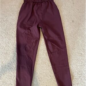 high rise maroon lululemon joggers with a drawstring waist. Perfect for casual wear.