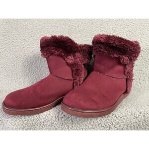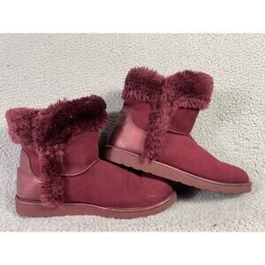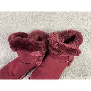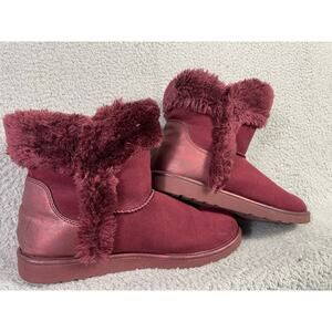 Maroon Faux Fur Winter Boots Size 7.5 Women’s Slip On Warm Cozy Snow Shoe Gift