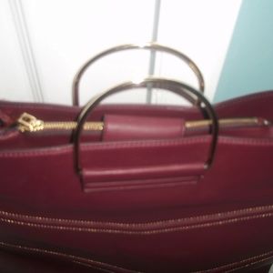 Maroon Faux Leather Handle Tote w/ Shoulder Strap