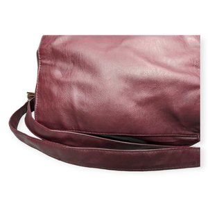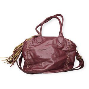 EUC, light wear on the bottom. This is on the larger side, it has 2 shoulder straps as well as a larger adjustable strap and a large tassel accent. Magnetic button closure only.