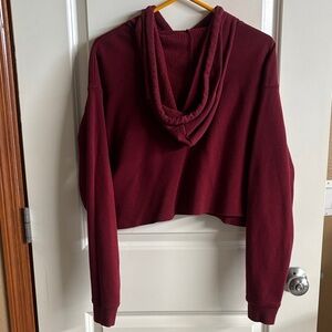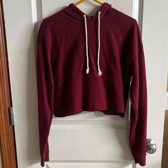 Stay cozy and stylish with this maroon hoodie. Perfect for casual outings and layering. Kind of cropped but not quite.