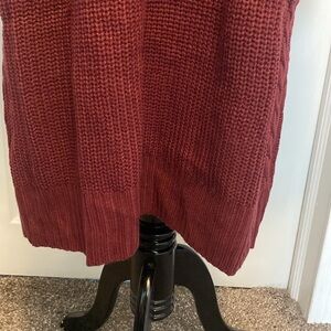 Maroon Long Cable Knit Cardigan Sweater Sz L NWOT