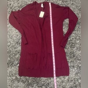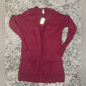 Maroon Long Cardigan with Pockets - Mudd (Size L) - NWT