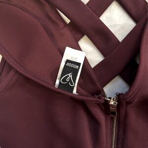 Maroon Midi Dress Cross Neck Design Slim Fit Zip Back Size Small