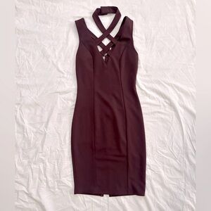 Maroon Midi Dress Cross Neck Design Slim Fit Size Small