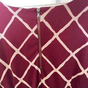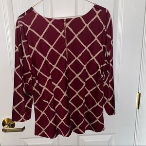 Maroon & Nude Patterned Blouse Zip up back 3/4 length sleeves Lots of stretch Size M