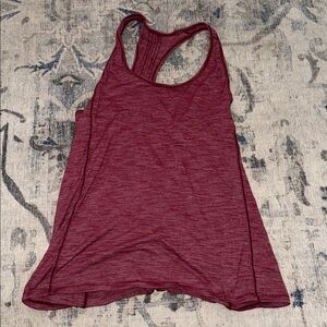 Stylish maroon racerback tank top. Perfect for workouts or casual wear.