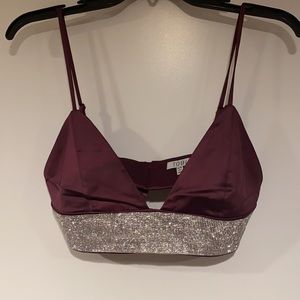 Satin matching set with rhinestone detailing. Top is a medium and the skirt is a large!!