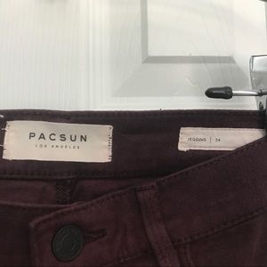 Maroon Jegging Jeans from Pacsun with ripped knees (never worn). If you want something modeled, don't hesitate to ask! Any other questions are welcomed also :)
