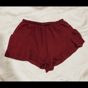 Maroon Ruffle Flowy Shorts