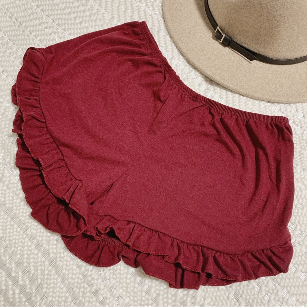 Maroon Ruffle Shorts