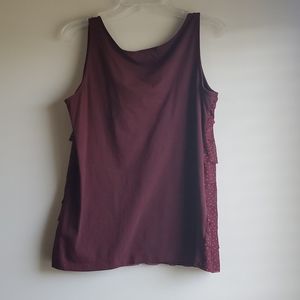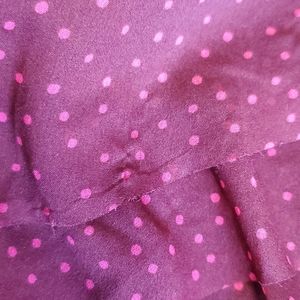 Gently worn ruffled tank. Purchased used, and only worn for family pictures. Very minor pucker/snag as shown in pic, not noticable when wearing. Cute ruffle and pink polka dot pattern down front. Back is a jersey material with some stretch. Pit to pit: 19"