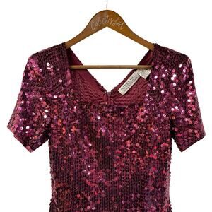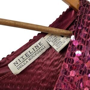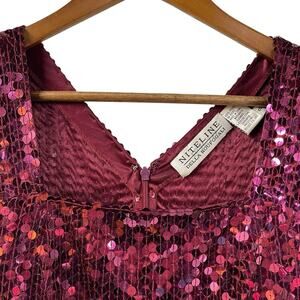 Maroon Sequin Mini Dress Niteline 8 Square Neck Vintage Silky Shiny Sparkly