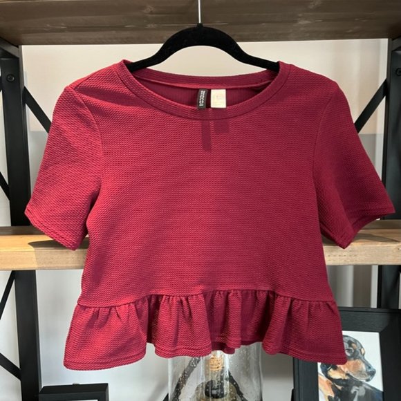 Divided by H&M Maroon Cropped Peplum Top Size XS