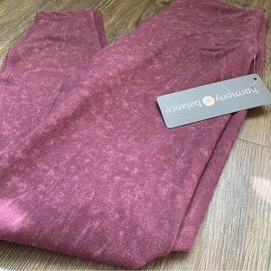 Stylish maroon leggings by Harmony Balance. Perfect for casual wear or workouts. Features a cute washed style design. Size small