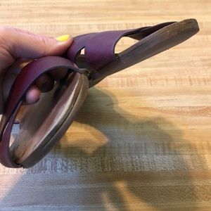 Adorable maroon slip on sandals. A bit worn but still cute. They are an 8.5 but I’m a true 9 and these are a little loose.