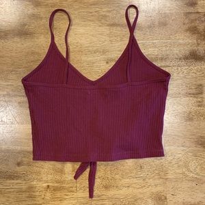 Maroon tank top with a cute tie in the front! This tank would be perfect for a party in the summer time!!! 🍾 has only been worn once or twice.