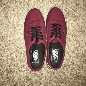 Like new Maroon Vans. Hardly worn, in great condition. I don’t have the box anymore due to a lack of space in my closet. Size 7.