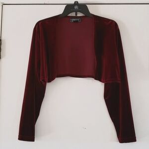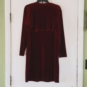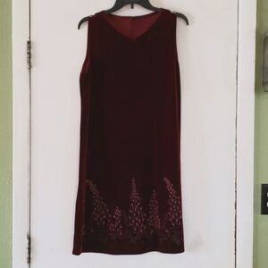 Women's Maroon Dress with small jacket over. The design at bottom also has a little glitter. Only worn 1 time. Velour like. Smoke free home.