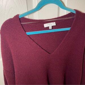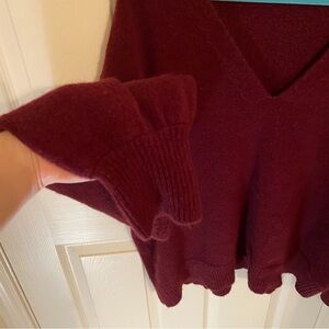 Very soft sweater in maroon color from “New Directions” brand from Belk. V-neck. Balloon sleeves. Good condition. Size XL.