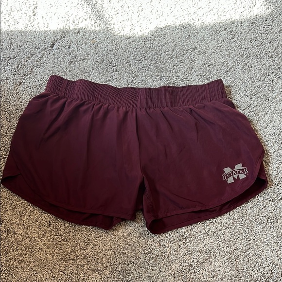 Stay comfortable and stylish with these maroon athletic shorts. Perfect for workouts or casual wear.