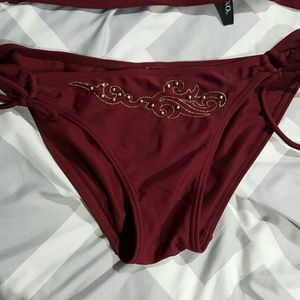 Maroon and gold bandeau bikini with beautiful detail nothing wrong and no embellishments missing