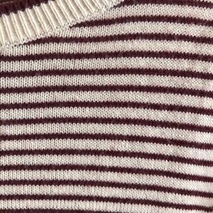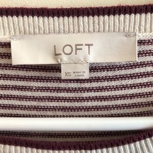 Maroon and white striped LOFT sweater with small bell sleeves