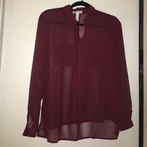 Maroon button down blouse! Never worn. Excellent condition! Very breezy and comfortable.
