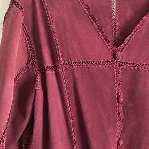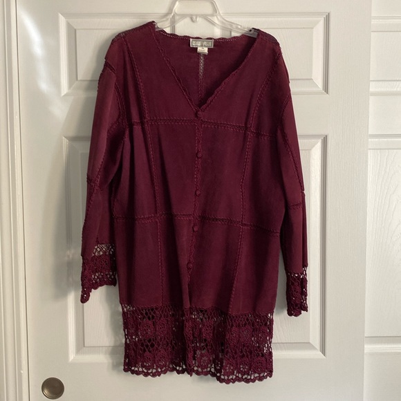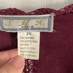 Maroon leather patchwork coat. Size 2X.