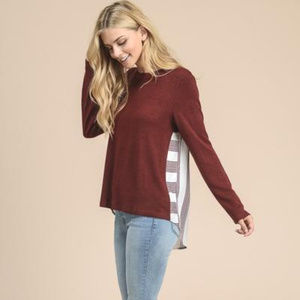 This top will add a touch of class to your casual look. This lightweight sweater has a round neckline and adorable contrasting stripes on the back with a fun zipper detail. Pair with slacks for a relaxed office look or with skinny jeans for a laid-back comfy style