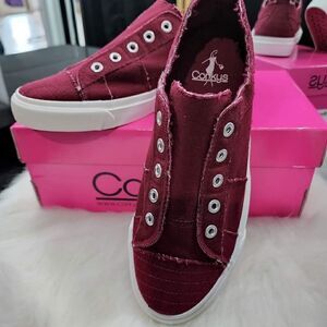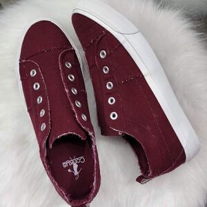 The comfort of a slip on sneaker with a fashion flair! Canvas upper Rubber sole Decorative eyelets Slip on, no laces Lightly padded insoles Pre-distressed look