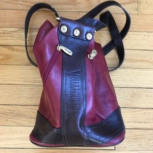 Maroon and brown crossbody shoulder purse by Valentina in excellent condition.