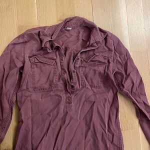 Maroon oversized collared shirt from old navy in a size small. It is quite wrinkled and needs to be ironed out, however it’s really cute. I’m good condition. Message me for questions 😊