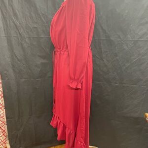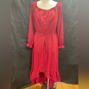 Dress is soft, has a drawstring waist, lined build in slip. Low to high