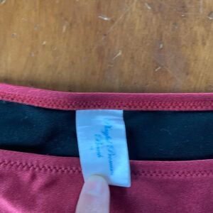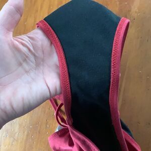 Women’s Maroon string bikini bottom, brand is playful promises beach, size 12, matches with cut out top also featured in my closet, the waist is approximately 14 inches but can be made it larger, length approximately 9 inches from top to bottom seam, moderate coverage, Good used condition.