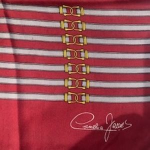 Cornelia James vintage maroon silk scarf. Signed with horse rein design.