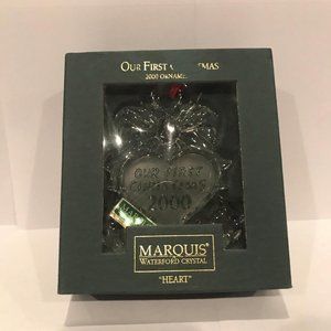 Marquis By Waterford Crystal 2002 Our First Christmas Heart Ornament
