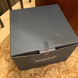 This beautiful bowl is etched Marquis by Waterford on the bottom. Has Sheridan sku sticker on bottom and a Marquis foil sticker on the side. This hasn’t been used but it has a few scratches on the bottom base. Box has some light wear.