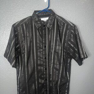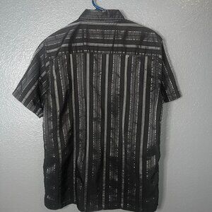Marquis Men's Black & Silver Abstract Striped Short Sleeve Button-Up – Size Medi