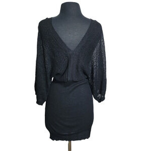 Marquis Ribbed Surplice Sweater Dress v neck black sz M