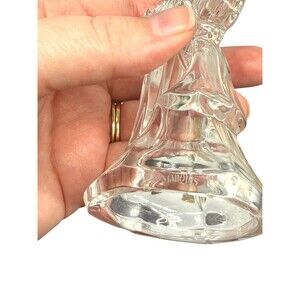 glass angel candle holder, crystal angel figurine, clear glass candlestick, vintage angel candle holder, angel with wings decor, Christmas angel candle holder, holiday angel decoration, collectible angel figurine, clear crystal angel ornament, religious angel candle holder, angel statue candle holder, elegant angel home decor, glass angel Christmas figurine, angel taper candle holder, decorative glass angel