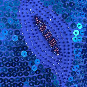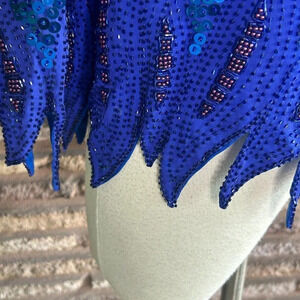 Marquis by Randall Cosco 100% Silk Royal Blue Sequins Beaded Flame Hem Outfit