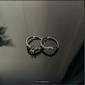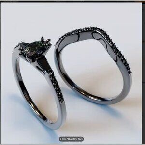 Marquise Cut Alexandrite Engagement Wedding Stacked 2 Ring Set in Rhodium