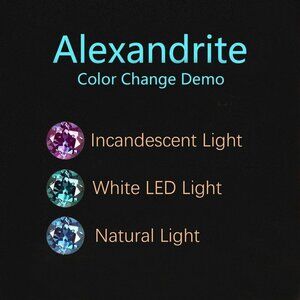 The alexandrite gemstone shines different colors in different lights. Under white LED light it shines greener, in Incandescent shines purple and in natural light/daylight shines blue.