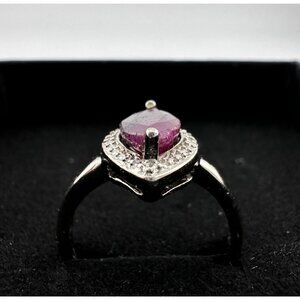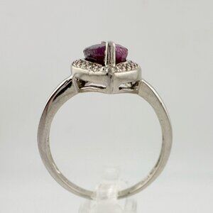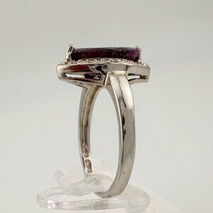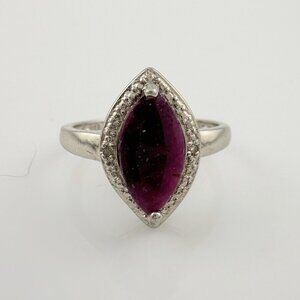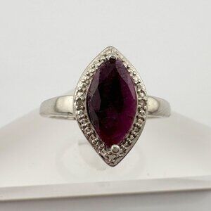 Marquise Cut Garnet & Diamond Ring - Sterling Silver - Size 8