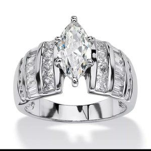 Marquise Engagement Ring, Baguette Wedding Ring, Luxury Vintage Ring, Bling Ring