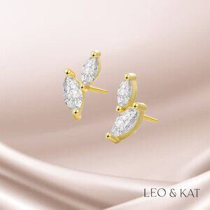 Marquise Stud Earrings in Gold and Silver. 925 Sterling Silver. #1033