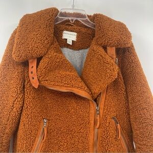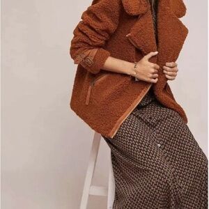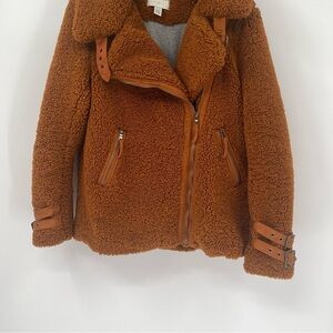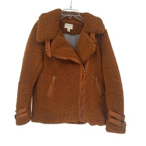 Marrakech Anthropologie Women size Small brown fuzzy Teddy Moto zip jacket